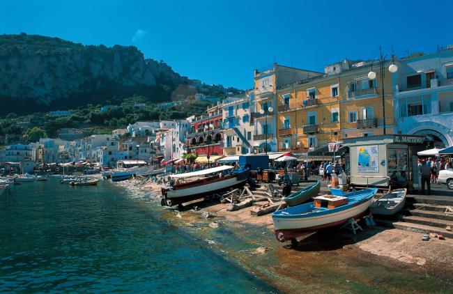 Sailing towards the west, as soon as we leave the port of Sorrento, you get your first glimpse of the marvellous island of Capri, just a short distance from the mainland, Skirting the north side of the lsland, we come first to the Marina Grande where we stop for a special opportunity to immerse yourself in the life and flavours of the island. In the afternoon, we depart again to discover the lighthouse of Punta Carena, the evocative Grotta Verde (Green Cave) the majestic Faraglioni rocks, the Natural Arch overlooking the sea and the distinctive Grotta Bianca (white cave). Finally leaving the island behind we head towards the Cape of Punta Campanella.