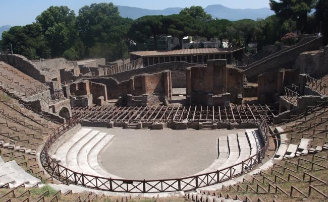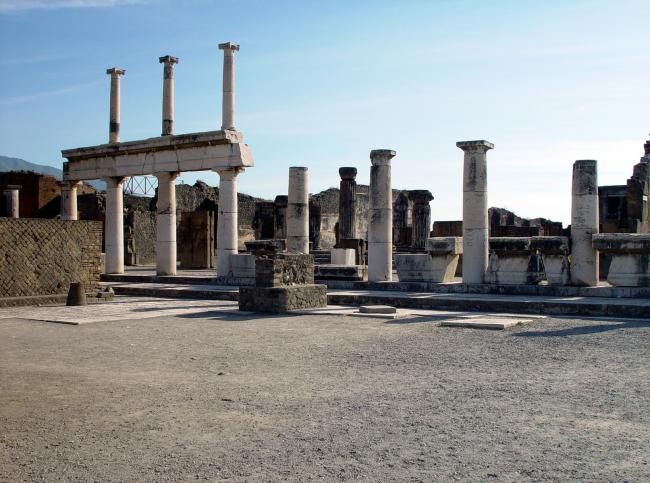 Pompeii is one of the most famous archaeological sites of the Campania region and it is is also UNESCO heritage since 1997 for its historical importance. The breathtaking extent (over sixty hectares) of ruins which form this large urban centre, which has in some way survived time and the brutal violence of the volcano, was entirely surrounded by walls which wound for more than three kilometres around the city. At the entrance to the city, at the gates, the remains of hotels, inns and post stations, which welcomed visitors and merchants, are to be found and, further into the urban centre, shops of all kinds (from bakers to laundries, from cobblers to smiths, from greengrocers to pastry shops), in some cases still decorated by their painted signs, private houses, altars, small chapels, spas and baths (both private and public) and grandiose public buildings. The latter are gathered in three main centres: the Civil Forum with the temple of Jupiter, the Basilica, the covered market, the building of Eumachia, the Triangular Forum and the district of the theatres, with the ancient Doric temple and that of lsis, the gymnasium, the large and small theatres and finally the Amphitheatre area.