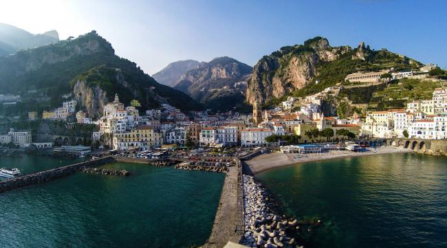 Sorrento is a renowned holiday resort and lies in one of the most spectacular point in the gulf of Naples. Because of its mild climate and wonderful position, Sorrento had been a favorite resort since the Roman times. It is bordered by crystal clear waters and surrounded by enchanting gardens and citrus fruit groves, yet much of its beauty is to be found along the roads in the houses with their typical local architecture, and in the monuments which testify to its long history. In Sorrento you will discover a little cultural treasure through the historical remains visible at the famous museum Correale, and the famous Cloister of San Francesco, a quiet place with a little garden near the Villa Comunale from where you can admire the Gulf of Naples. In the center of the town is possible to buy some souvenir like limoncello bottles or inlaid wood objects famous in Sorrento for their quality and beauty.