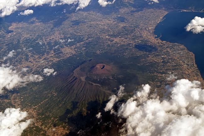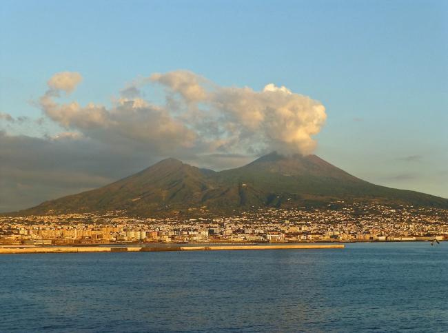 Originating around twelve thousand years ago and formed from the subsequent seismic transformations of a previous volcano, the Vesuvius the only active volcano in continental Europe is one of the best known landmarks of Campania and more particularly of Naples. It remained quiet until 79 A.D., the year of the famous and catastrophic eruption described by Pliny the Younger in two letters dated 106 A.D. and in some moving verses of 88 AD. by the poet Martial, and which buried, together with the inhabitants, extremely flourishing towns such as Pompeii and Herculaneum. On that very occasion, according to scholars, Vesuvius took on its present shape.